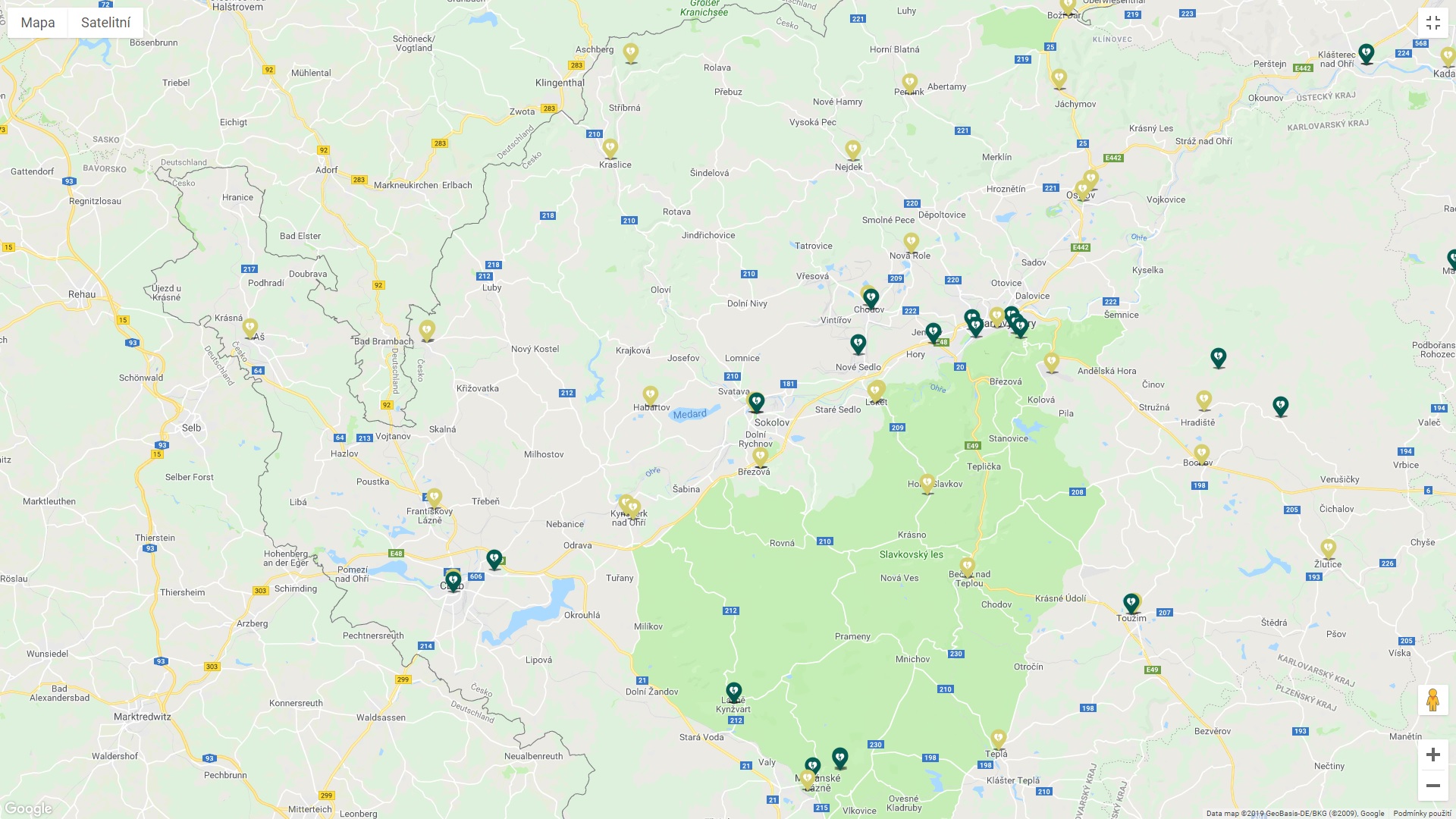 Světle zelené - mobilní AED Tmavě zelené- stabilní AED